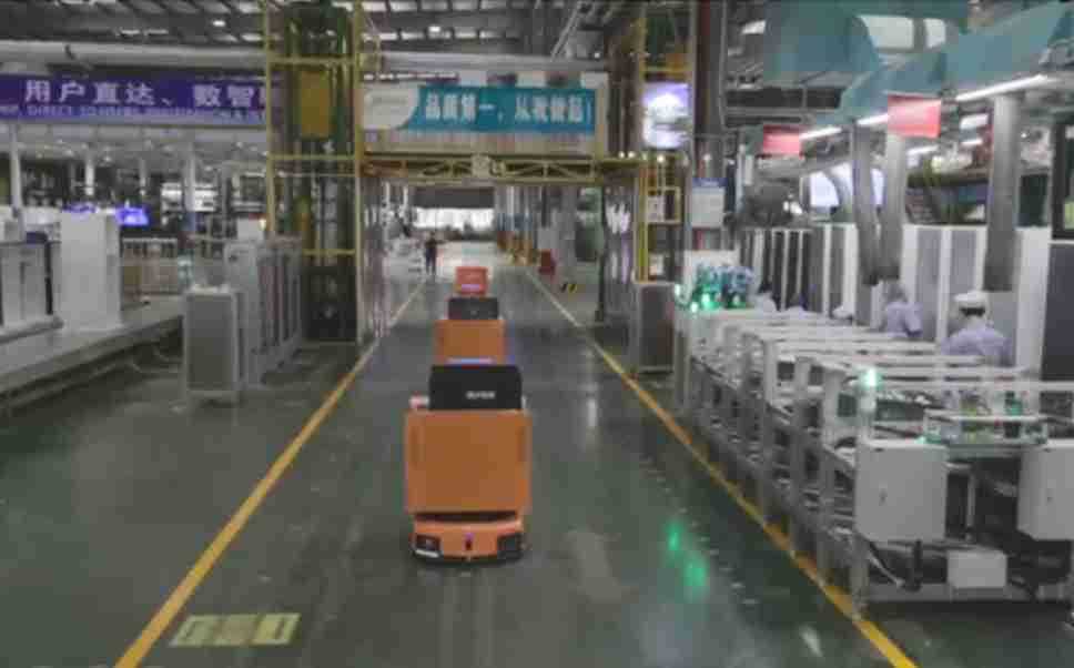 为车载冰箱物流配送打造的智能解决方案,,包含产中物流通过潜伏举升AMR搬运至线边,,产后成品物流智能仓储,,流程包含产中物流智能齐套入库,,,,线边安灯叫料AMR智能配送至线边,,,,成品入库、、、出库,,,通过无人堆高车机器人,,,智能仓储管理替代人工作业管理,,,实现更高存储、、、、更高效率、、、、更具柔性化的解决方案。。